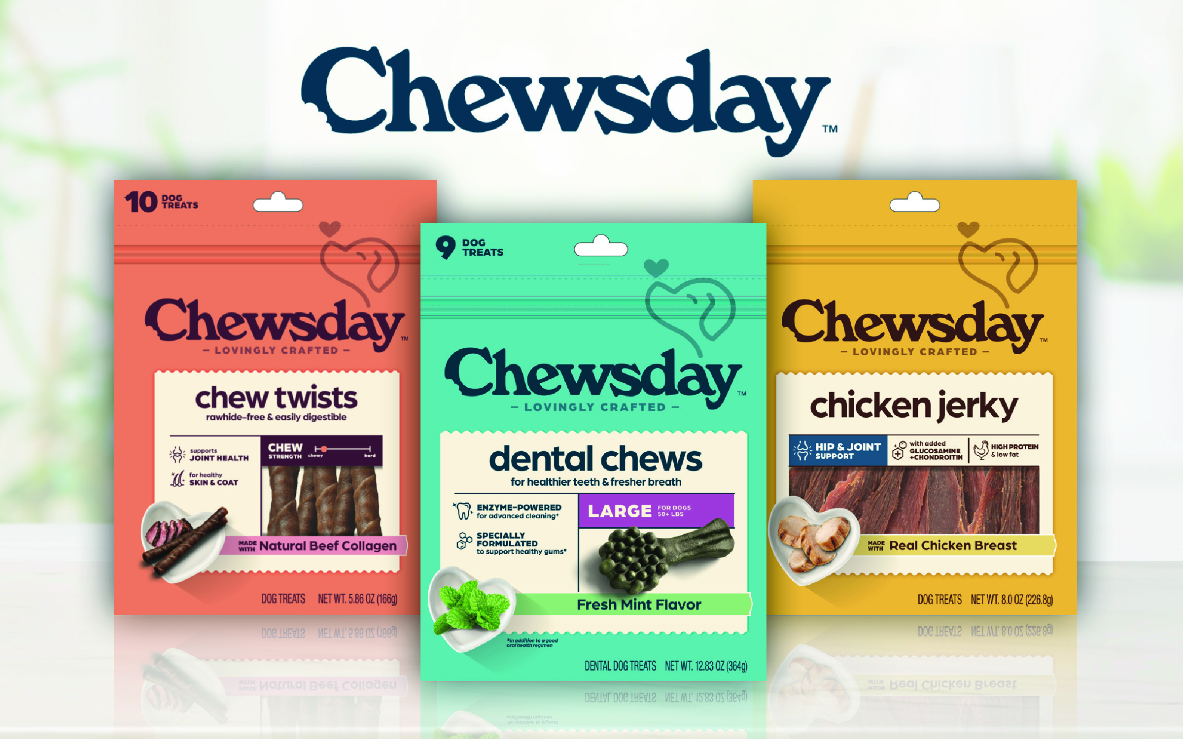 Lovingly crafted and designed with purpose, every Chewsday treats combine irresistible flavor with “better-for-them” benefits so pet parents can feel good about treating their dogs every day.